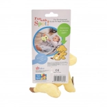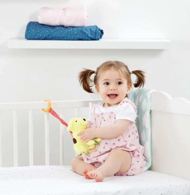 Piesek wspiera rozwój małej motoryki oraz zmysłów u najmłodszych. Jego kolorowy wygląd i ruchomość zapewniają zainteresowanie każdego dziecka.