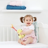 Łatwe przymocowanie do łóżeczka lub fotelika samochodowego sprawia, że zabawka jest zawsze pod ręką, zapewniając rozrywkę w podróży i w domu.