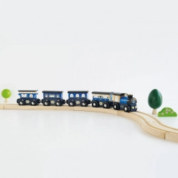 Pociąg jest kompatybilny z innymi zabawkami Le Toy Van oraz standardowymi kolejkami i torami, co umożliwia nieskończone możliwości kombinacji. Ręcznie malowany nietoksycznymi farbami na bazie wody, zapewnia bezpieczną zabawę dla dzieci.