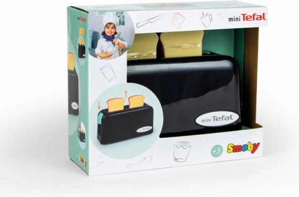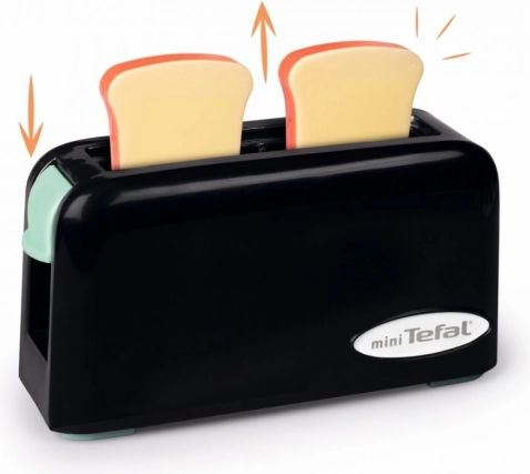 Mini Tefal dziecięcy toster to idealna zabawka dla dzieci, które chcą naśladować pracę w kuchni. Wystarczy włożyć plastikowe plasterki do tosteru i nacisnąć przycisk, aby mechanicznie je wysunąć.