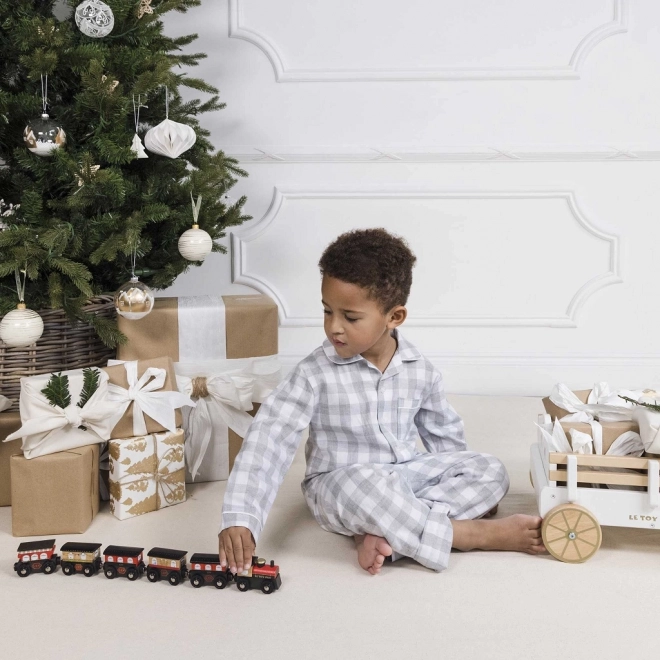Stylowy drewniany pociąg ROYAL EXPRESS od Le Toy Van ucieszy dzieci i rodziców. Zawiera lokomotywę i pięć wagonów z magnetycznym łączeniem, wykonany jest z zrównoważonego drewna i malowany nietoksycznymi farbami na bazie wody. Wspiera małą motorykę, zabawy wyobrażeniowe i jest kompatybilny z większością drewnianych kolejek.