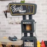 Część kuchenna do przygotowywania posiłków oraz lada wydawcza z kasą i terminalem płatniczym wspierają realistyczną zabawę w restaurację.