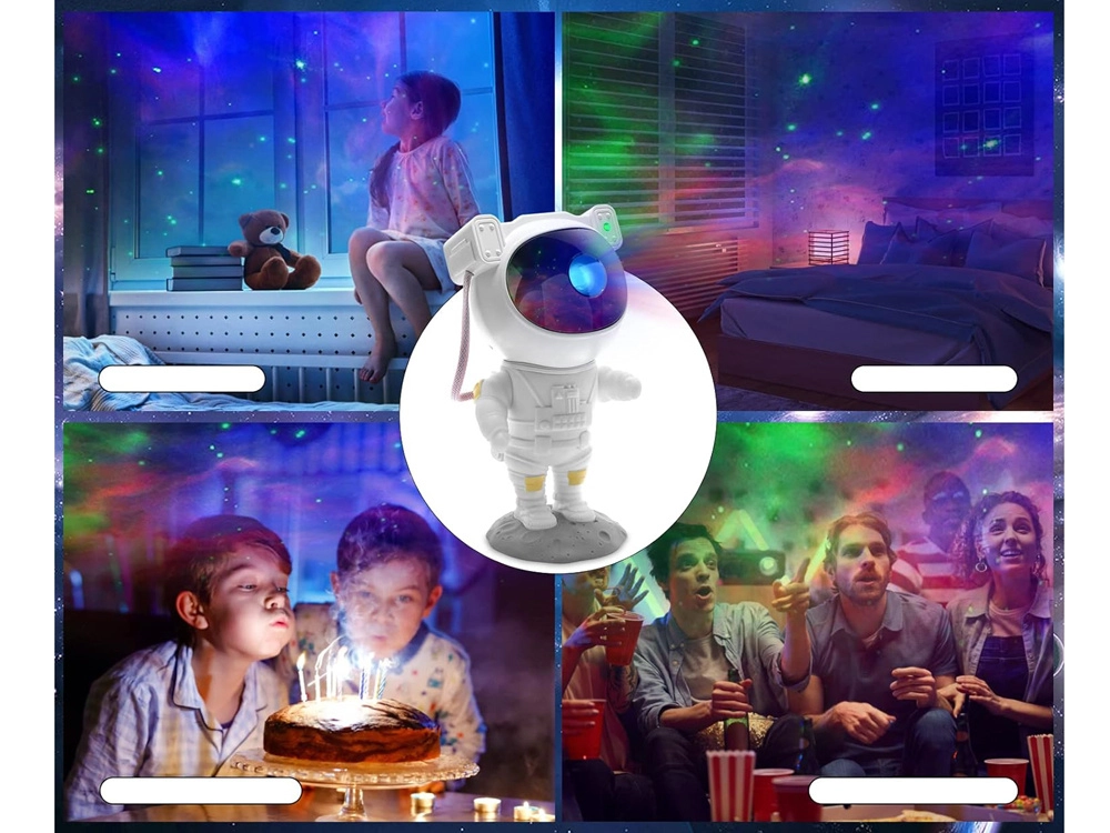 Projektor gwiazd / lampka nocna Astronauta to doskonały dodatek dla każdego miłośnika odległych galaktyk i kosmicznych przygód. Dzięki temu projektorowi możesz łatwo i szybko odkrywać magię kosmosu z wygody własnego domu.