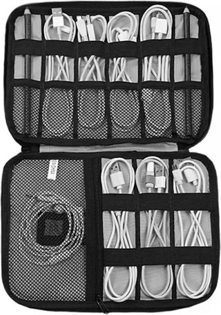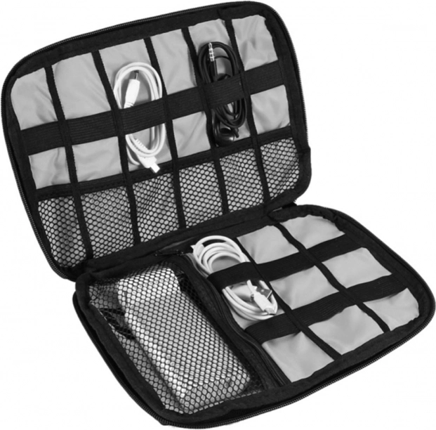 Elastyczne uchwyty i wewnętrzna kieszeń mieszczą więcej kabli oraz drobne akcesoria, dzięki czemu zawsze szybko je znajdziesz.