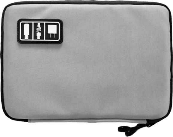 Ten szary podróżny organizer to świetne rozwiązanie dla każdego, kto chce mieć akcesoria elektroniczne zawsze pod ręką i w idealnym porządku. Wykonany z wytrzymałego poliestru, oferuje przemyślane przegrody, elastyczne paski i siateczkowe kieszenie do bezpiecznego przechowywania kabli, ładowarek, powerbanków, pendrive’ów i kart pamięci. Zamknięcie na wysokiej jakości zamek chroni zawartość podczas przenoszenia.