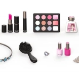 Odkryj magię zabawy w salon piękności z kosmetyczną walizeczką My Beauty Vanity. Ta piękna i funkcjonalna walizeczka zawiera 13 replik kosmetyków, takich jak szminki, lakiery do paznokci, cienie do powiek, tusz do rzęs i inne. Nie brakuje również grzebienia, opaski i różnych buteleczek.