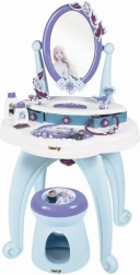 Toaletka 2w1 inspirowana Królestwem Lodu oferuje wszystko, czego potrzebują małe księżniczki do codziennej pielęgnacji. Zawiera duże obrotowe lustro oraz bogate akcesoria, takie jak perfumy i inne kosmetyczne dodatki.