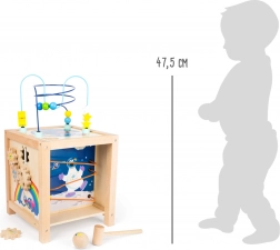 Ta wielofunkcyjna kostka jest idealnym narzędziem wspierającym rozwój dzieci, ponieważ oferuje pięć różnych stron pełnych ciekawych aktywności. Dzięki kolorowym postaciom i przyjaznym motywom pomaga dzieciom uczyć się i eksperymentować w bezpiecznym środowisku.