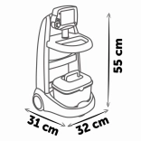 Elektroniczny wózek lekarski SMOBY oferuje dzieciom realistyczną zabawę w lekarza. Dzięki zintegrowanemu elektronicznemu modułowi EKG z prawdziwymi dźwiękami dzieci mogą wypróbować pomiar funkcji życiowych i posłuchać bicia serca. Wózek jest lekki, stabilny i łatwy w prowadzeniu dzięki dwóm kółkom, więc bez trudu poradzą sobie z nim nawet młodsze dzieci. Całe wyposażenie można przejrzyście ułożyć w dołączonej walizeczce.