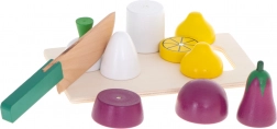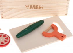 W komplecie znajduje się deska, bezpieczny nóż oraz obierak. Mali kucharze wypróbują przygotowanie posiłków krok po kroku – od obierania po krojenie.