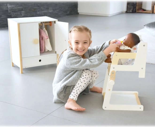 Krzesełko jest częścią serii Little Button, która oferuje jednolity styl projektowania dla różnych akcesoriów dla lalek, umożliwiając stworzenie harmonijnego kącika dziecięcego.
