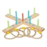 Ciesz się godzinami zabawy z tą drewnianą grą rzucania kółkami! Ta gra trenuje koordynację ręka-oko oraz zwiększa precyzję i motorykę małą.