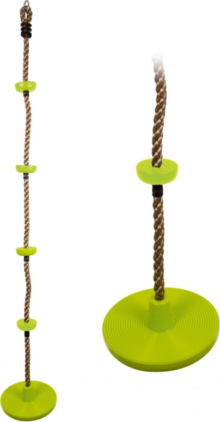 Połączenie liny wspinaczkowej z wygodnym siedziskiem w formie dysku daje podwójną dawkę zabawy. Łatwy montaż dzięki dołączonemu oczku do zawieszenia.