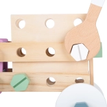 Ten wysokiej jakości drewniany zestaw konstrukcyjny w stylu nordyckim zamieni małych budowniczych w prawdziwych inżynierów. Dzieci za pomocą klucza i śrubokręta samodzielnie złożą różne modele – od pojazdów po proste konstrukcje – a równie łatwo je ponownie rozbiorą. Widoczne usłojenie drewna w połączeniu z pastelowymi kolorami pobudza zmysły i sprawia, że zabawa jest przyjemna i bezpieczna.