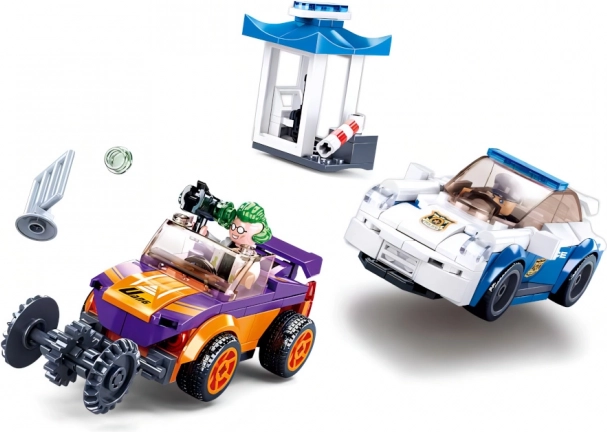 Zestaw zawiera dwa pojazdy – biało-niebieski radiowóz oraz oryginalny, kolorowy samochód, również z mechanizmem naciągowym. Każdy pojazd ma unikalne detale, wzornictwo i rozmiar, co umożliwia niezliczone scenariusze zabawy.