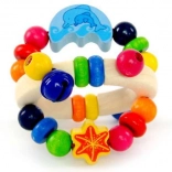 Zabawna i kolorowa drewniana grzechotka, która pobudza wyobraźnię i rozwój umiejętności motorycznych. Wykonana z drewna pozyskiwanego w sposób przyjazny dla środowiska.