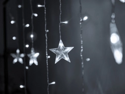 Ta świąteczna kurtyna LED zamieni okna, ściany i wnęki w bajkową dekorację. Zimnobiała barwa światła podkreśli nowoczesne wnętrza i doda im eleganckiego, zimowego charakteru – idealna na świąteczne chwile, do zdjęć i wieczornego relaksu.