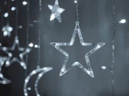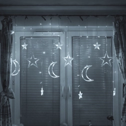Stwórz w domu magiczną atmosferę dzięki wiszącej kurtynie LED z motywem księżyca i gwiazd. Oferuje elegancką, zimną biel, 8 trybów świecenia oraz zasilanie sieciowe zapewniające nieprzerwany blask. Dzięki 138 diodom LED i klasie odporności IP44 jest idealna jako dekoracja świąteczna i całoroczna do salonu, sypialni czy pokoju dziecięcego.