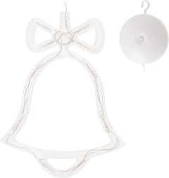 Uprzyjemnij sobie zimowe wieczory elegancką wiszącą dekoracją w kształcie dzwoneczka. Zintegrowane diody LED o ciepłej białej barwie tworzą magiczny nastrój w Twoim domu. Dzięki zasilaniu bateryjnemu i przyssawce łatwo umieścisz ją na oknie, drzwiach lub ścianie – bez kabli i bez kłopotu.