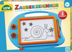 Magnetyczna tablica do rysowania LENA to świetna zabawka dla małych artystów. Dzieci mogą pisać, rysować i stemplować wciąż od nowa – bez bałaganu i bez papieru. Dołączony rysik jest solidnie przymocowany sznurkiem, więc się nie zgubi, a suwak szybko wymazuje obrazek.
