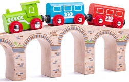 Most BIGJIGS RAIL doda Twojej kolejce imponującej wysokości i długości. Dzięki solidnemu drewnianemu wykonaniu i gładkim złączom pociągi poruszają się płynnie, a pod łukami jest wystarczająco miejsca nawet na wysokie ładunki. Eleganckie zdobienia przypominające kamienne mury nadają zestawowi realistyczny wygląd.