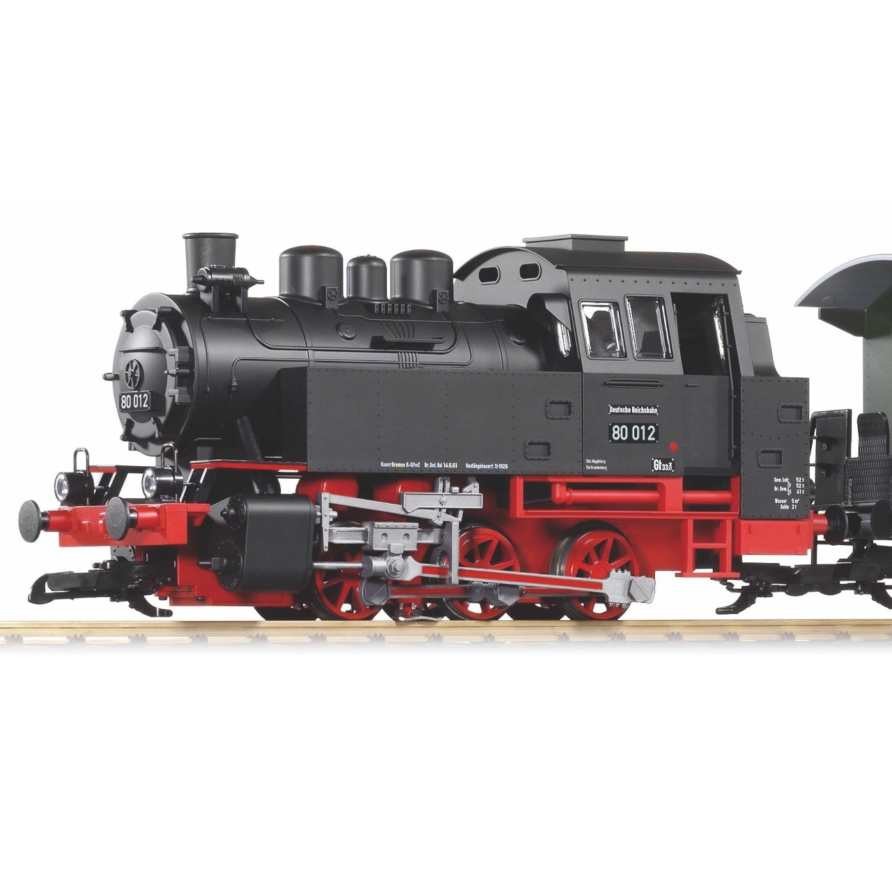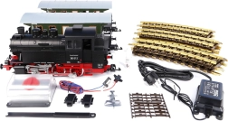 Odkryj imponującą makietę kolejową w skali G z parową lokomotywą BR 80 i dwoma wagonami osobowymi DR. Zestaw oferuje solidne wykonanie do użytku na zewnątrz, sterowanie analogowe, funkcyjne oświetlenie, moduł dźwiękowy oraz wytwornicę dymu dla realistycznej jazdy w domu i w ogrodzie.
