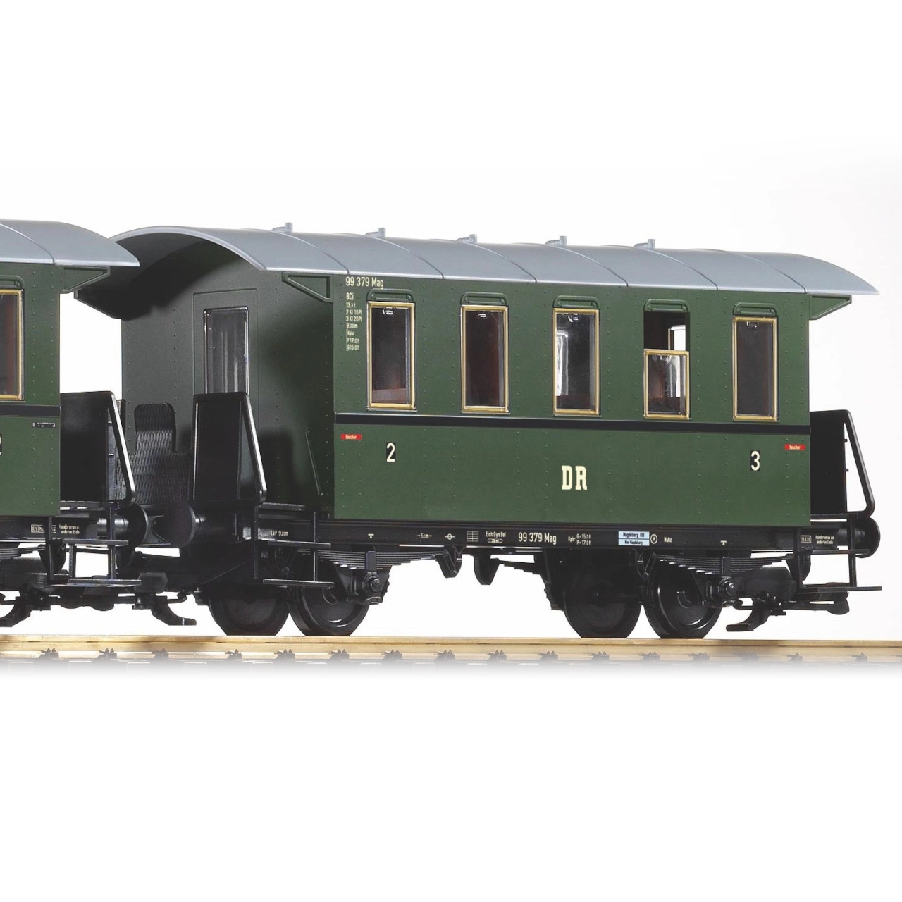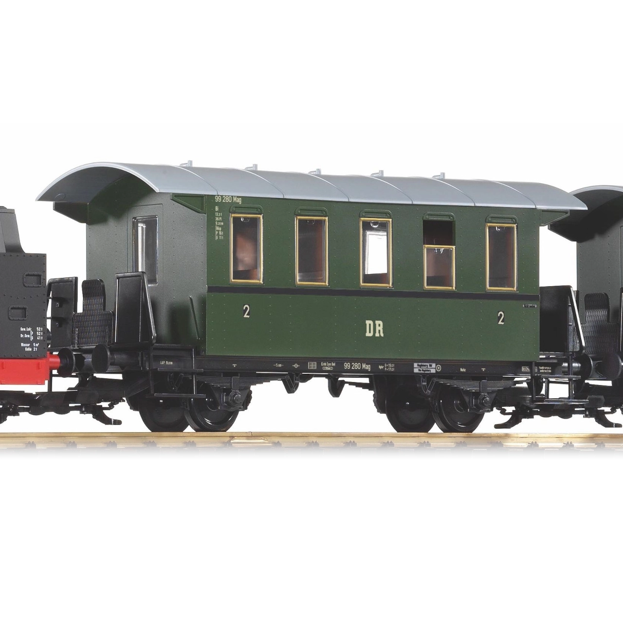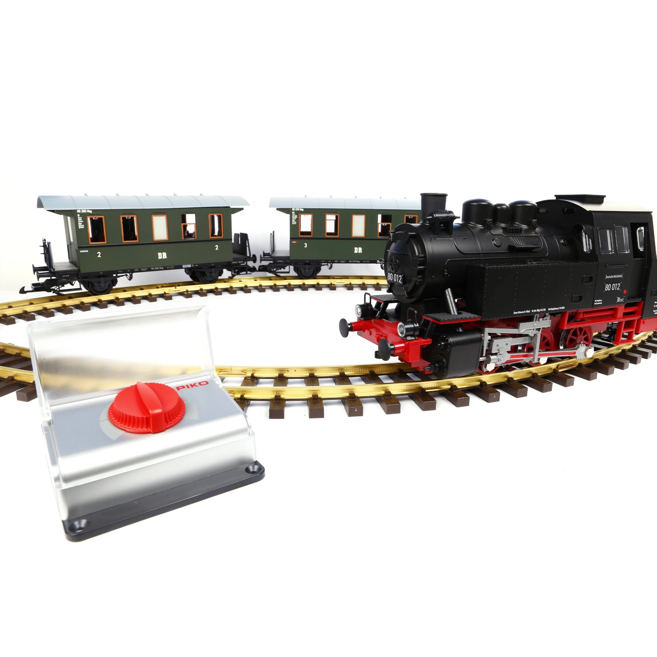 Ten zestaw startowy PIKO w barwach DR z epoki III zapewnia wielkie wrażenia w skali G. Parowa lokomotywa BR 80 z chromowanymi zestawami kołowymi i łożyskami kulkowymi gwarantuje płynny bieg, światła automatycznie przełączają się zgodnie z kierunkiem jazdy, a zintegrowany dźwięk sterowany magnesami torowymi dodaje autentyczności. Wytwornica dymu z dołączonym płynem potęguje atmosferę parowej trakcji.