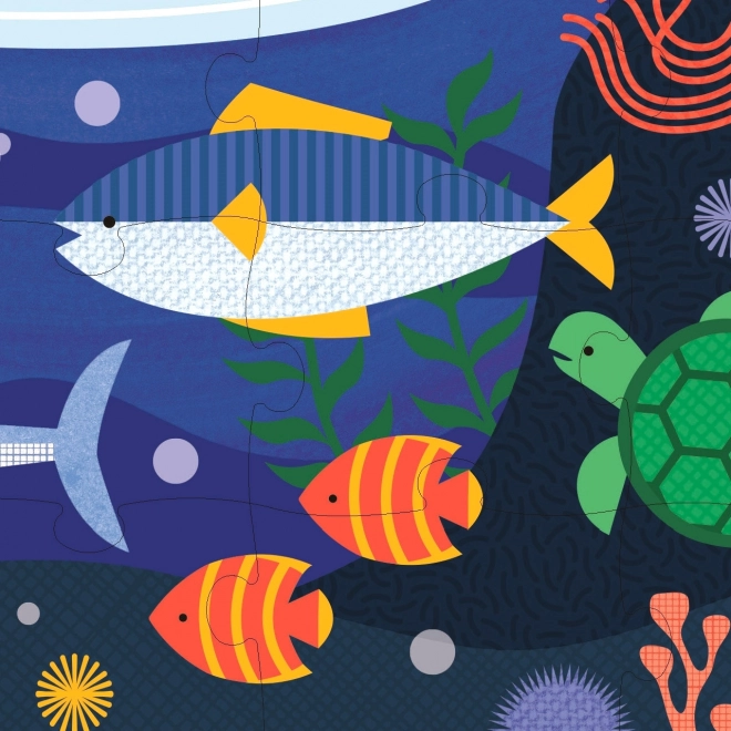 Odkryj fascynujący podwodny świat z podwójną przyjemnością dzięki dwustronnym puzzlom. Każda strona zawiera inny wzór pełen morskich stworzeń, co gwarantuje urozmaiconą i wciągającą zabawę dla dzieci od 5 lat. Puzzle wykonane są z wysokiej jakości papieru z certyfikatem FSC i zadrukowane barwnikami roślinnymi.