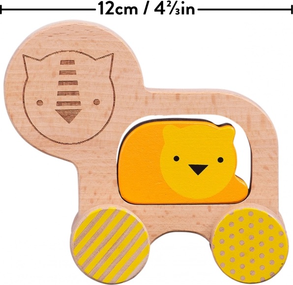 Nasz drewniany lew marki Petit Collage to coś więcej niż tylko zabawka. Wykonany z wysokiej jakości drewna z certyfikatem FSC, ten lew ma w środku wyjmowany element lwiątka, który daje dzieciom radość i inspiruje do kreatywnej zabawy.