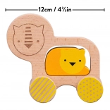 Ten drewniany lew z gładkimi kółkami stanie się ulubionym towarzyszem Twojego dziecka! Łatwy do uchwycenia dla małych rączek i zachęca do rozwoju umiejętności motorycznych.