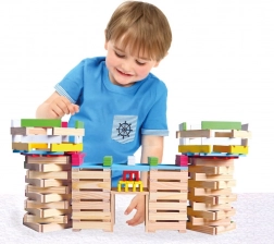Z tą układanką nie ma granic dla dziecięcej wyobraźni! Drewniane klocki miasto Bino zawierają łącznie 150 elementów, które umożliwiają budowanie różnorodnych struktur i wspierają logiczne myślenie dzięki zaawansowanemu designowi i kolorowym kontrastom.