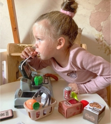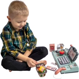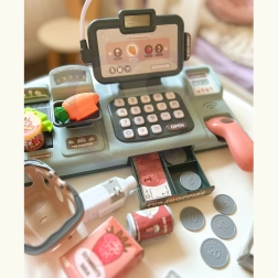 Kasa zawiera terminal, dzięki któremu dziecko może dokonywać płatności gotówką, kartą lub smartfonem, podobnie jak dorośli w sklepie. Zintegrowana waga i ruchomy pas umożliwiają dziecku organizowanie zakupów i doświadczenie prawdziwej roli sprzedawcy.