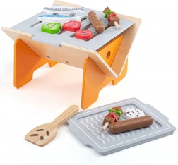 Zorganizuj ogrodowe przyjęcie z drewnianym grillem stołowym od Bigjigs Toys! Zawiera 10 sztuk jedzenia, łopatkę, tacę i węgle. Łatwy montaż bez śrubek. Wykonany z materiałów zrównoważonych.