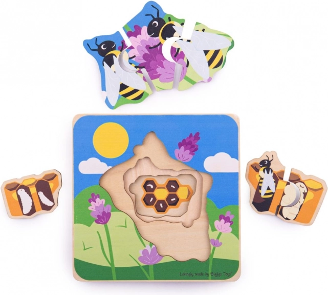 Odkryj, jak z jajeczka powstaje pszczoła! Ta edukacyjna i zabawna warstwowa układanka o motywie pszczół ma 4 warstwy, 7 elementów i jest idealna dla dzieci od 2 lat. Wykonana z wysokiej jakości drewna z odpowiedzialnych źródeł, spełnia europejskie normy bezpieczeństwa i oferuje solidne, trwałe wykonanie.
