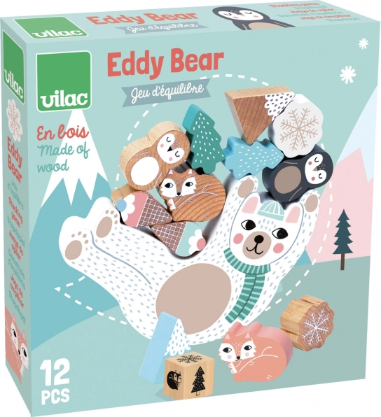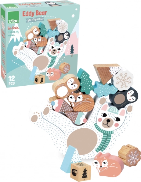 Gra balansowa Miś Eddy w delikatnych skandynawskich tonach zapewnia świetną zabawę dla dzieci i rodziców. Dzieci rzucają kolorową kostką i zgodnie z wylosowanym kolorem dokładają drewniane elementy na kołyszącego się misia. Gra trenuje zręczność, koncentrację i równowagę, a także wspiera cierpliwość i logiczne myślenie.