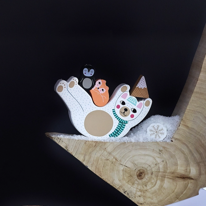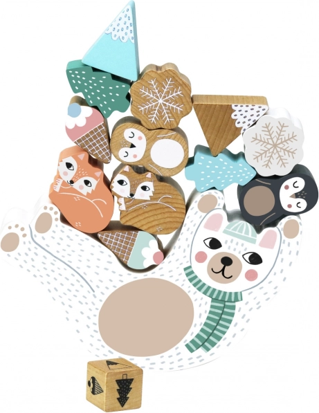 Urocza drewniana gra balansowa z misiem Eddy rozwija małą motorykę, cierpliwość i koordynację. Rzuć kostką i zgodnie z kolorem układaj na brzuszku misia śnieżynki, lisy polarne, pingwiny, góry lub lody. Kto utrzyma wieżę najdłużej, wygrywa! Wyprodukowano ekologicznie, ilustracje Michelle Carlslund.