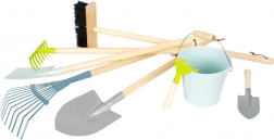 Drewniane trzonki i metalowe części robocze wytrzymają codzienne dziecięce użytkowanie w ogrodzie, na piaskownicy i podwórku.