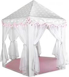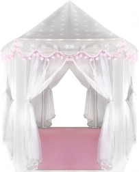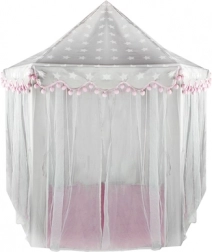 Namiot dziecięcy szaro‑różowy Kruzzel z zasłonkami i pomponami