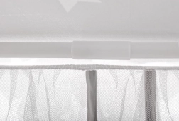 Sześć wejść z jasnymi, półprzezroczystymi zasłonkami można ściągnąć i zawiązać w kokardy. Dzieci mają wystarczająco światła, powietrza i poczucie bezpieczeństwa.