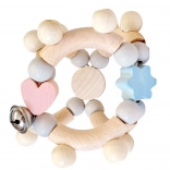 Drewniana motoryczna grzechotka marki Hess zachwyca pastelowymi kolorami i dzwoneczkiem, które wspierają wyobraźnię i poprawiają drobną motorykę dziecka.