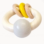 Hess drewniana grzechotka z kuleczką i kółeczkami żółta