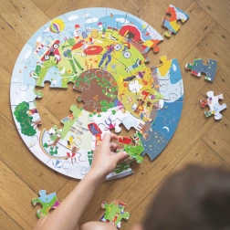 Dziecięce okrągłe podłogowe puzzle Bigjigs Toys wprowadzają dzieci w zmiany sezonowe w unikalny sposób. Każdy element jest starannie zaprojektowany, aby tworzyć pełną scenę 360 stopni, przedstawiającą różnorodne aktywności i krajobrazy typowe dla wiosny, lata, jesieni i zimy.