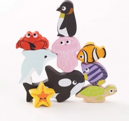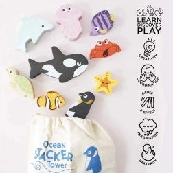 Ta wysokiej jakości drewniana układanka z motywem oceanu zapewnia dzieciom od 18 miesięcy godziny bezpiecznej i twórczej zabawy. Elementy w kształcie wieloryba, delfina, rozgwiazdy, pingwina, żółwia morskiego, meduzy i innych morskich przyjaciół są zaprojektowane tak, aby dobrze leżały w dziecięcej dłoni, wspierając koordynację ręka–oko, cierpliwość i wyobraźnię.