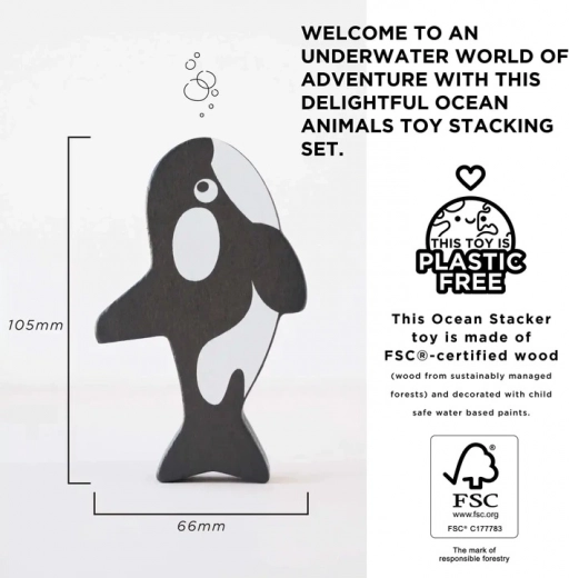 Odkryj magię podwodnego świata z drewnianą układanką LE TOY VAN PETILOU. Zestaw 9 morskich zwierzątek z drewna FSC oferuje zabawę sensoryczną, rozwój małej motoryki i naukę poprzez zabawę. Bez plastiku, malowany nietoksycznymi farbami na bazie wody, idealny również w podróży dzięki bawełnianemu woreczkowi.