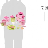 Ten zestaw wykonany jest z wysokiej jakości drewna, co zapewnia długotrwałą zabawę i bezpieczeństwo dla dzieci. Dzięki zdejmowanym pokrywkom w dzbanuszku i ogólnie solidnemu wykonaniu dzieci mogą łatwo manipulować poszczególnymi elementami.