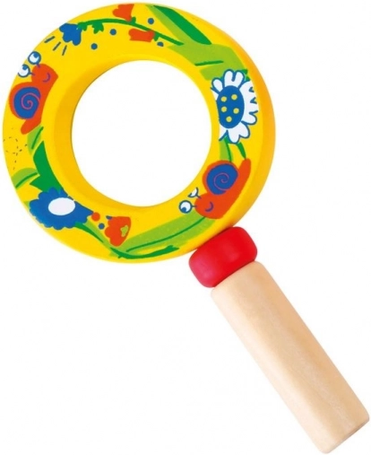 Ta wysokiej jakości lupa dla dzieci łączy solidną drewnianą rączkę i lekki plastikowy element soczewki, aby była bezpieczna i wygodna dla małych rąk. Radosne ilustracje owadów i kwiatów motywują dzieci do odkrywania detali otaczającego świata – od kwiatów po małe robaczki.