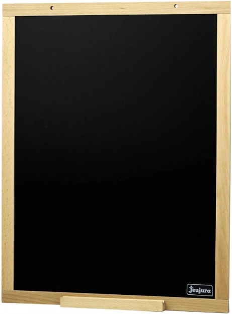 Wisząca tablica z małym miejscem na przybory, do pisania i rysowania kredą. Wyprodukowana we Francji, z litego drewna bukowego i sosnowego pochodzenia francuskiego. Części są zabezpieczone wyłącznie za pomocą farb i lakierów na bazie wody. Pakowana w karton drukowany tuszami roślinnymi. Główne cechy: wymiary tablicy 43x56 cm do użytku z kredą miejsce na przybory wyprodukowana we Francji