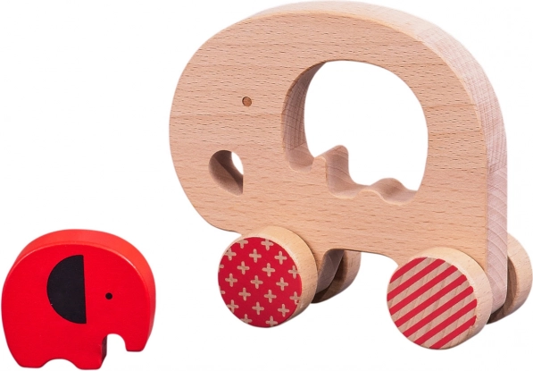 - Drewniany słoń na kółkach + wyjmowane słoniątko