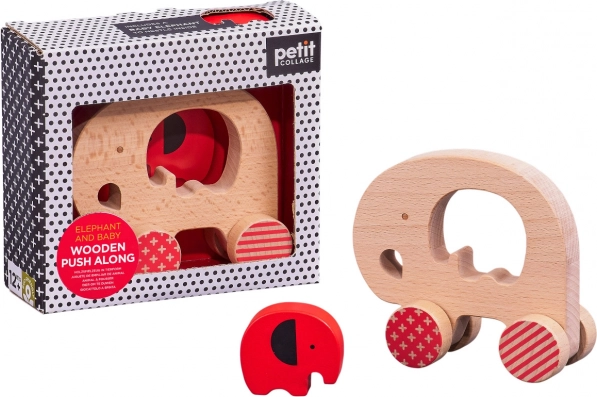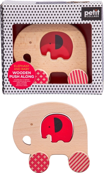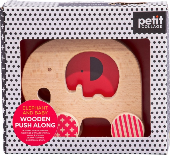 Zabawka rozwija umiejętności podczas ciągnięcia i pchania, trenuje chwyt i wyobraźnię przestrzenną dzięki słoniątku, które wkłada się w otwór pośrodku. Wytrzymała konstrukcja z litego buku gwarantuje długą żywotność i łatwą pielęgnację.