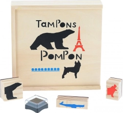 Ten designerski zestaw stempli powstał w oparciu o czyste linie rzeźb artysty François Pompona i w reinterpretacji Géralda Lo Monaco oferuje wyjątkowe doświadczenie artystyczne. Dzieci mogą łączyć głowy i tułowie żyrafy, hipopotama, pantery czy niedźwiedzia, tworząc nowe, wyobrażone zwierzęta.